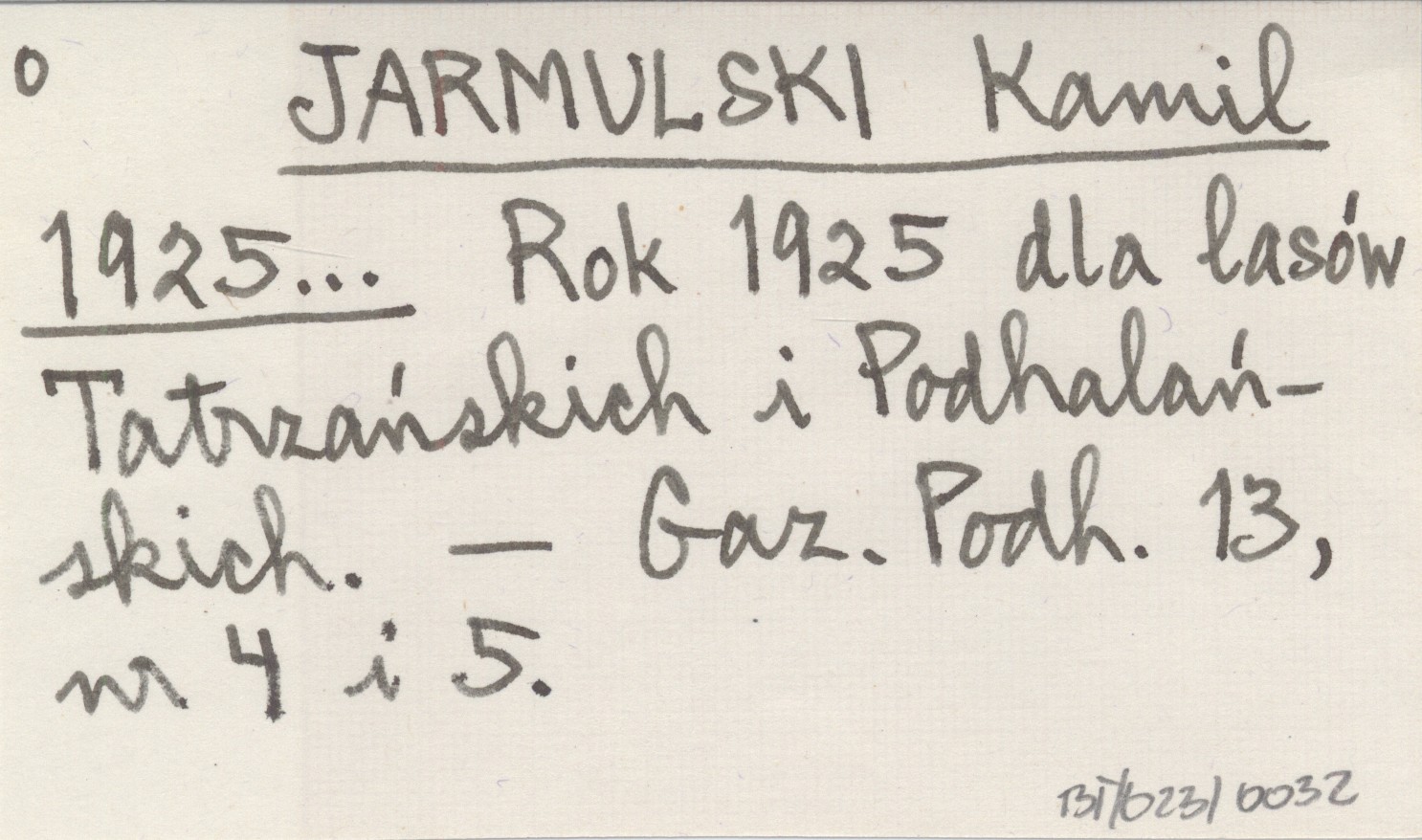 JARMULSKI Kamil 1925... Rok 1925 dla lasów Tatrzańskich i Podhalańskich.