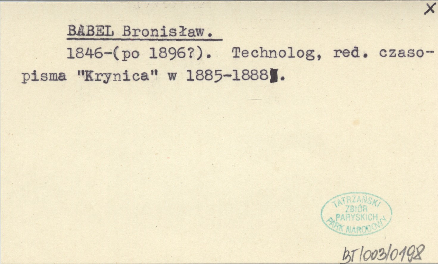 1846-(po 1896?). Technolog, red. czasopisma "Krynica" w 1885-1888.