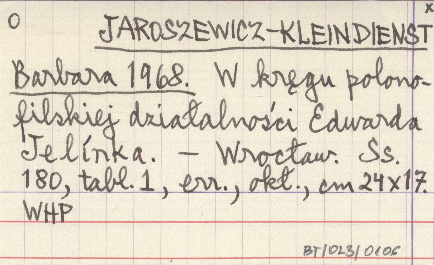 JAROSZEWICZ-KLEINDIENST Barbara 1968 W kręgu polonofilskiej działalności Edwarda Jelínka.