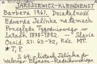 JAROSZEWICZ-KLEINDIENST Barbara 1961 Działalność Edwarda Jelínka na łamach Przeglądu Tygodniowego w latach 1878-1892.