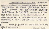 JAROSZEWSKI Wojciech 1958 Tektonika serii wierchowej na wschodnim zboczu Bobrowca. Tektoika Verkhovoy Verkhnetatranskoy Serii Na Vostochnom Sklone Bobrovtsa v Tatrakh. Tectonics of the High-Tatric Series on the Eastern Slope of Mount Bobrowiec.