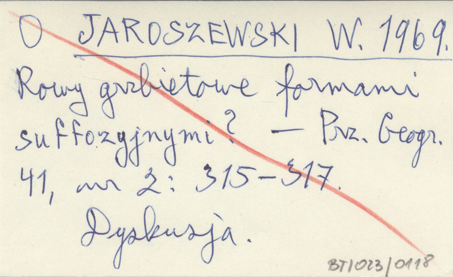 JAROSZEWSKI W. 1969 Rowy grzbietowe formami suffozyjnymi?