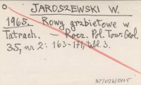 JAROSZEWSKI W. 1967 Badania geologiczne skał górnej części Doliny Kościeliskiej w Tatrach.