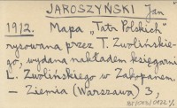 JAROSZYŃSKI Jan 1912 Mapa "Tatr Polskich" rysowana przez T. Zwolińskiego, wydana nakładem księgarni L. Zwolińskiego w Zakopanem.