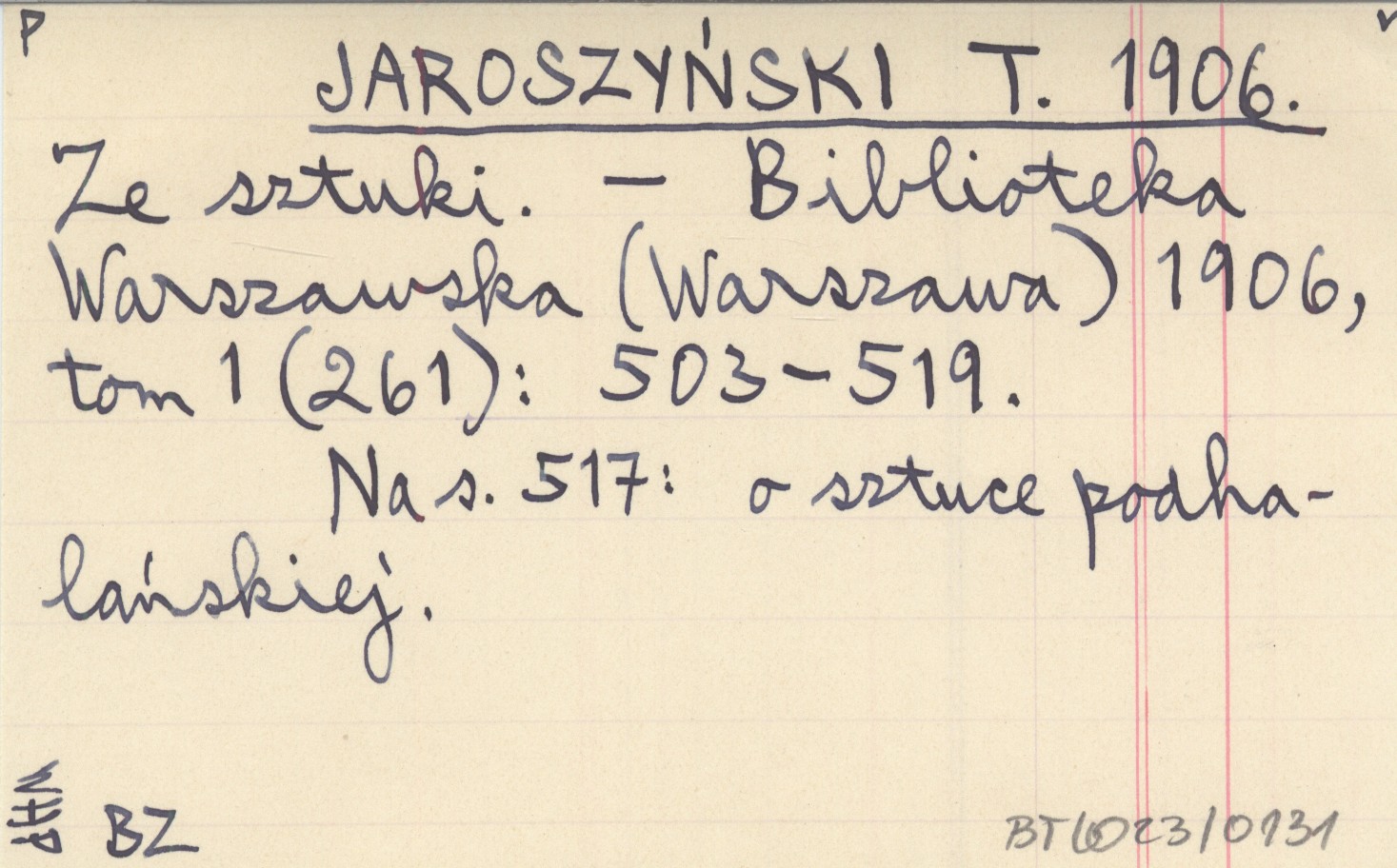 Biblioteka Warszawska (Warszawa) , 1906, t. 1 (261): 503-519. Na s. 517: o sztuce podhalańskiej.