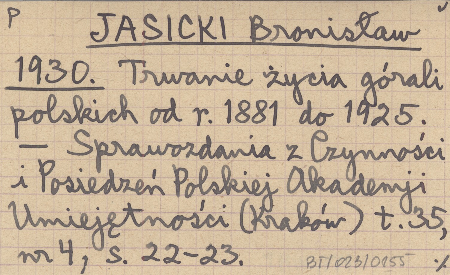 JASICKI Bronisław 1930 Trwanie życia górali polskich od r. 1881 do 1925.