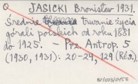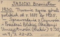 JASICKI Bronisław 1931 Średnie trwanie życia górali polskich od roku 1881 do 1925.