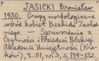 JASICKI Bronisław 1950 Grupy morfologiczne wśród kobiet Beskidu Zachodniego.