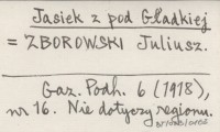 Jasiek z pod Gładkiej ZBOROWSKI Juliusz Gazeta Podhalańska 6 (1918), nr 16. Nie dotyczy regionu.