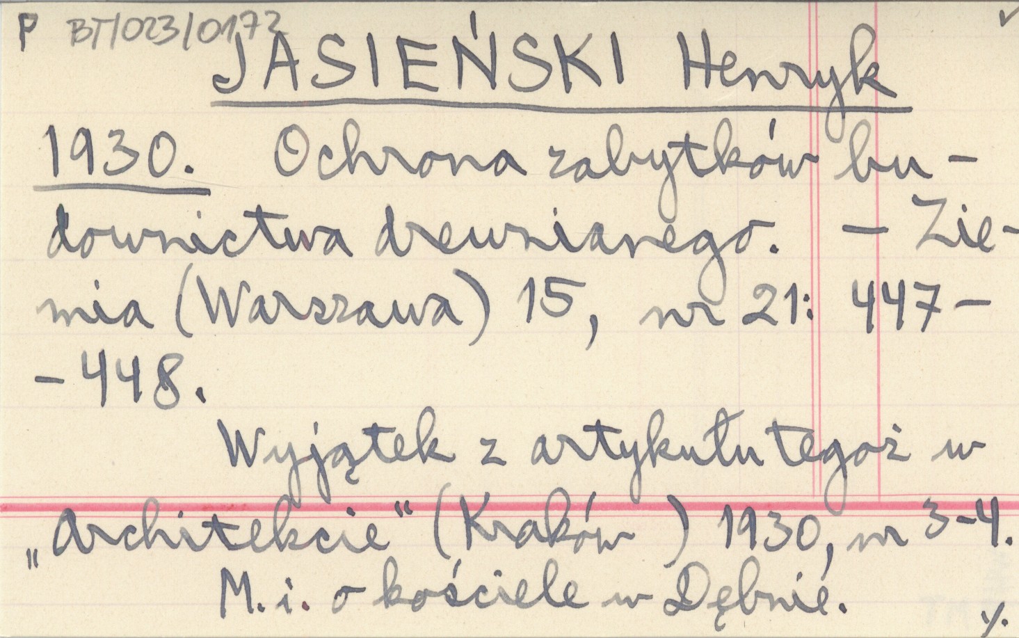 JASIEŃSKI Henryk 1930 Ochrona zabytków budownictwa drewnianego.