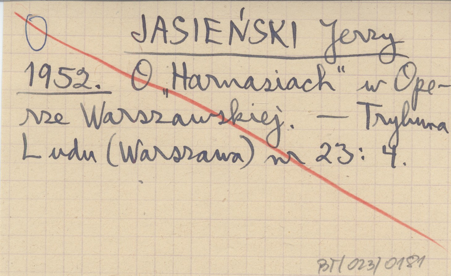 JASIEŃSKI Jerzy 1952 O "Harnasiach" w Operze Warszawskiej.