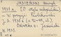 JASIEŃSKI Henryk 1931 [O stylu zakopiańskim].