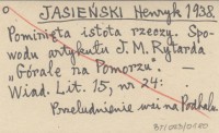 JASIEŃSKI Henryk 1938 Pominięta istota rzeczy. Spowodu artykułu J.M. Rytarda "Górale na Pomorzu".