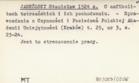 JASKÓLSKI Stanisław 1924 a O amfibolitach tatrzańskich i ich pochodzeniu.