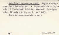 1926 JASKÓLSKI Stanisław Łupki chlorytowe Tatr Zachodnich.
