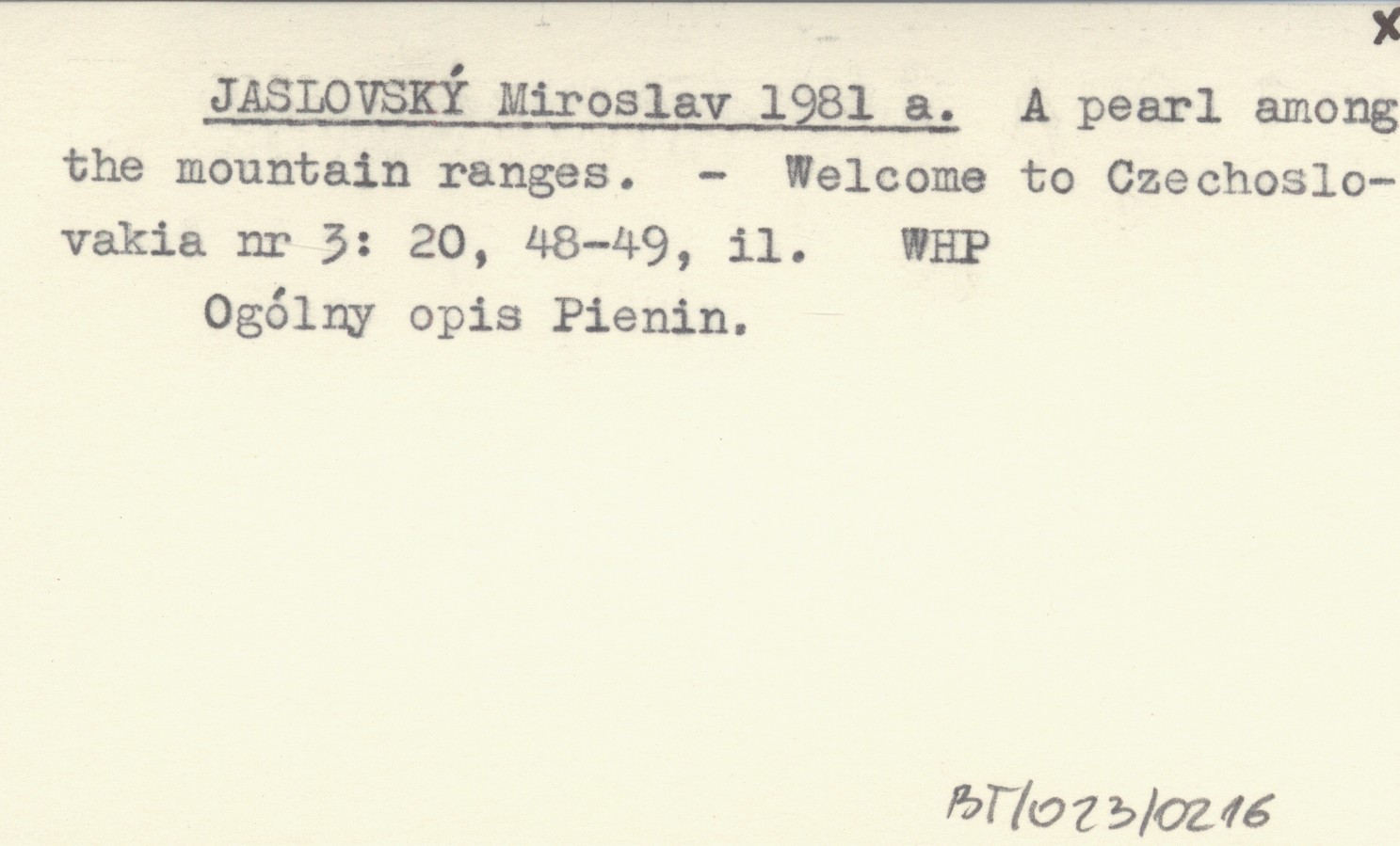 JASLOVSKÝ Miroslav 1981 a A pearl among the mountain ranges.