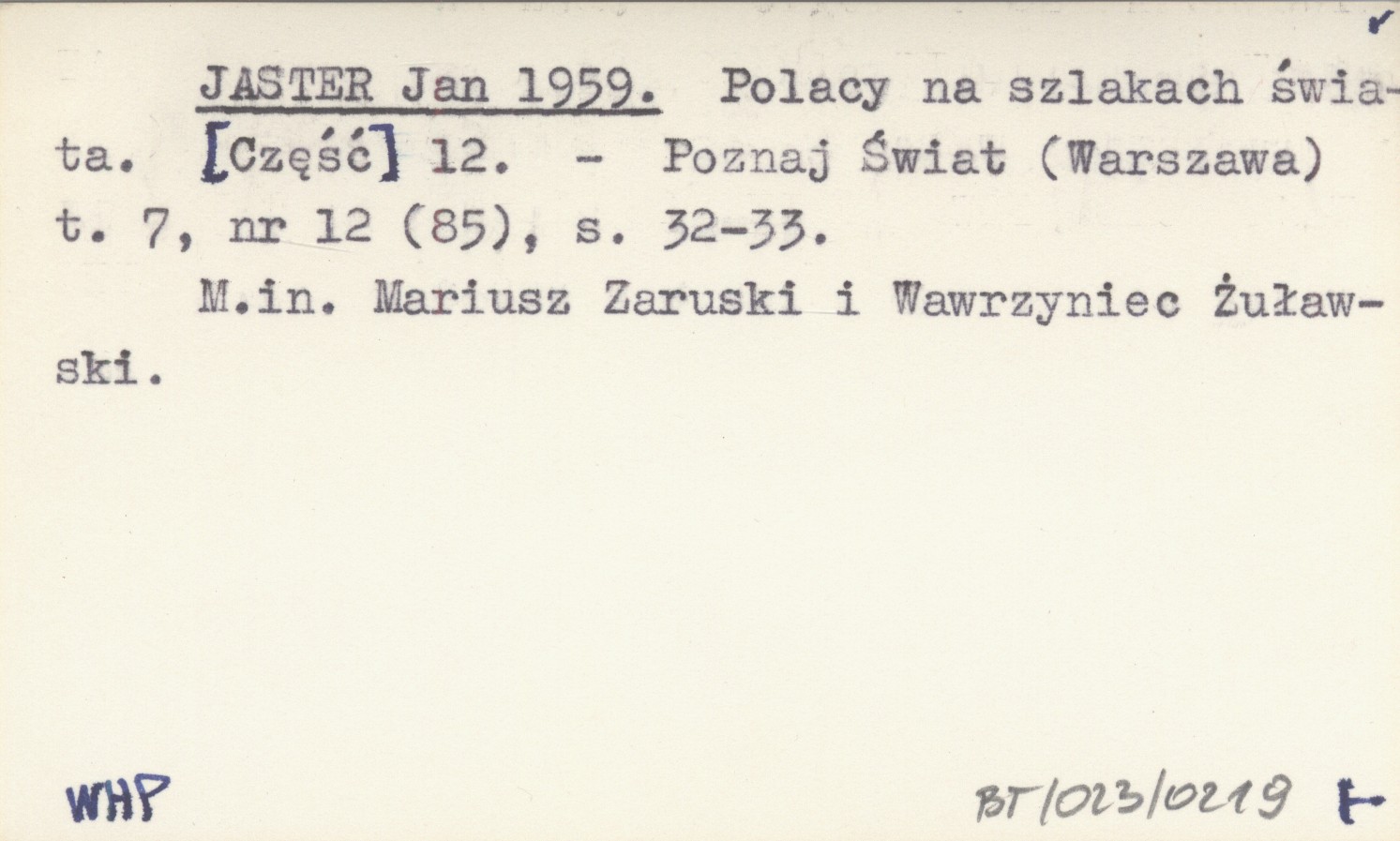 JASTER Jan 1959 Polacy na szlakach świata. [Część] 12.