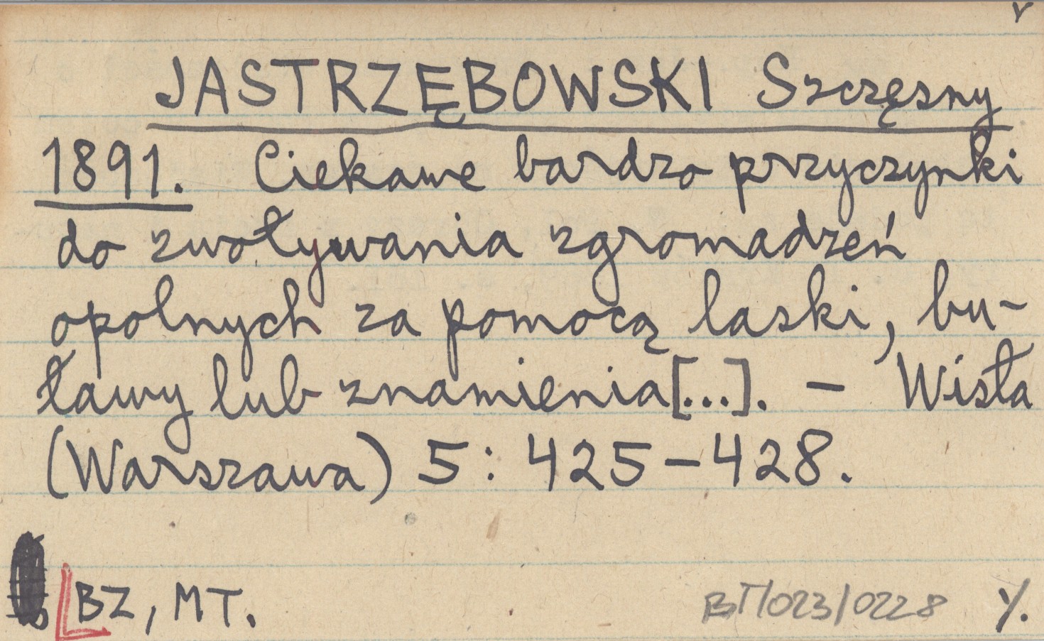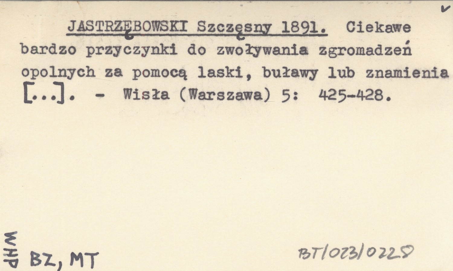 JASTRZĘBOWSKI Szczęsny 1891 Ciekawe bardzo przyczynki do zwoływania zgromadzeń opolnych za pomocą laski, buławy lub znamienia [...].