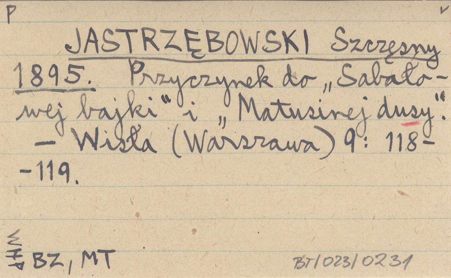 JASTRZĘBOWSKI Szczęsny 1895 Przyczynek do "Sabałowej bajki" i "Matusinej dusy".