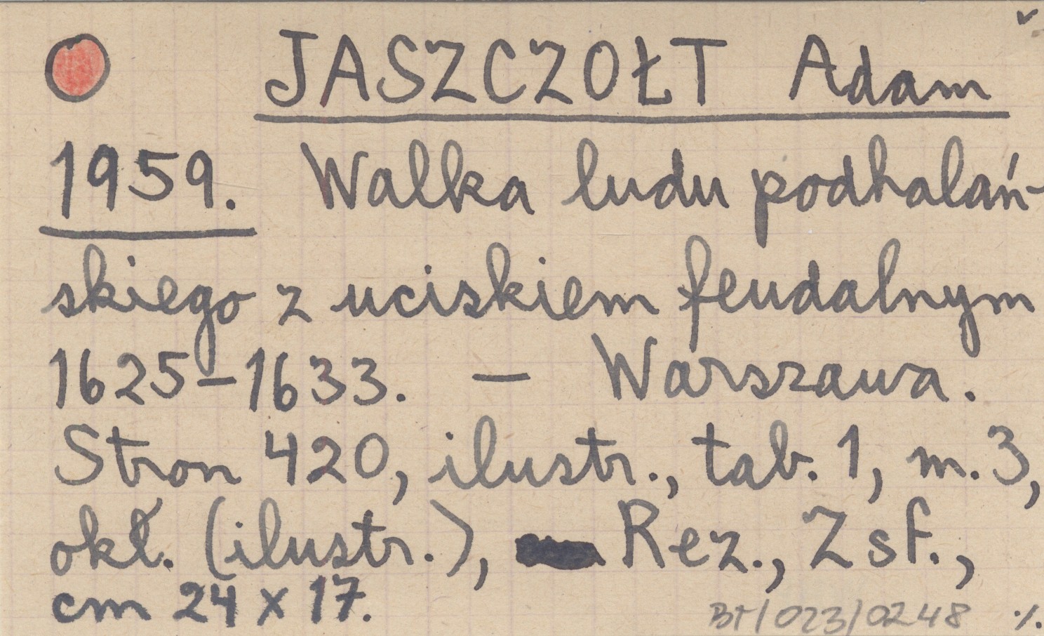JASZCZOŁT Adam 1959 Walka ludu podhalańskiego z uciskiem feudalnym 1625-1633.