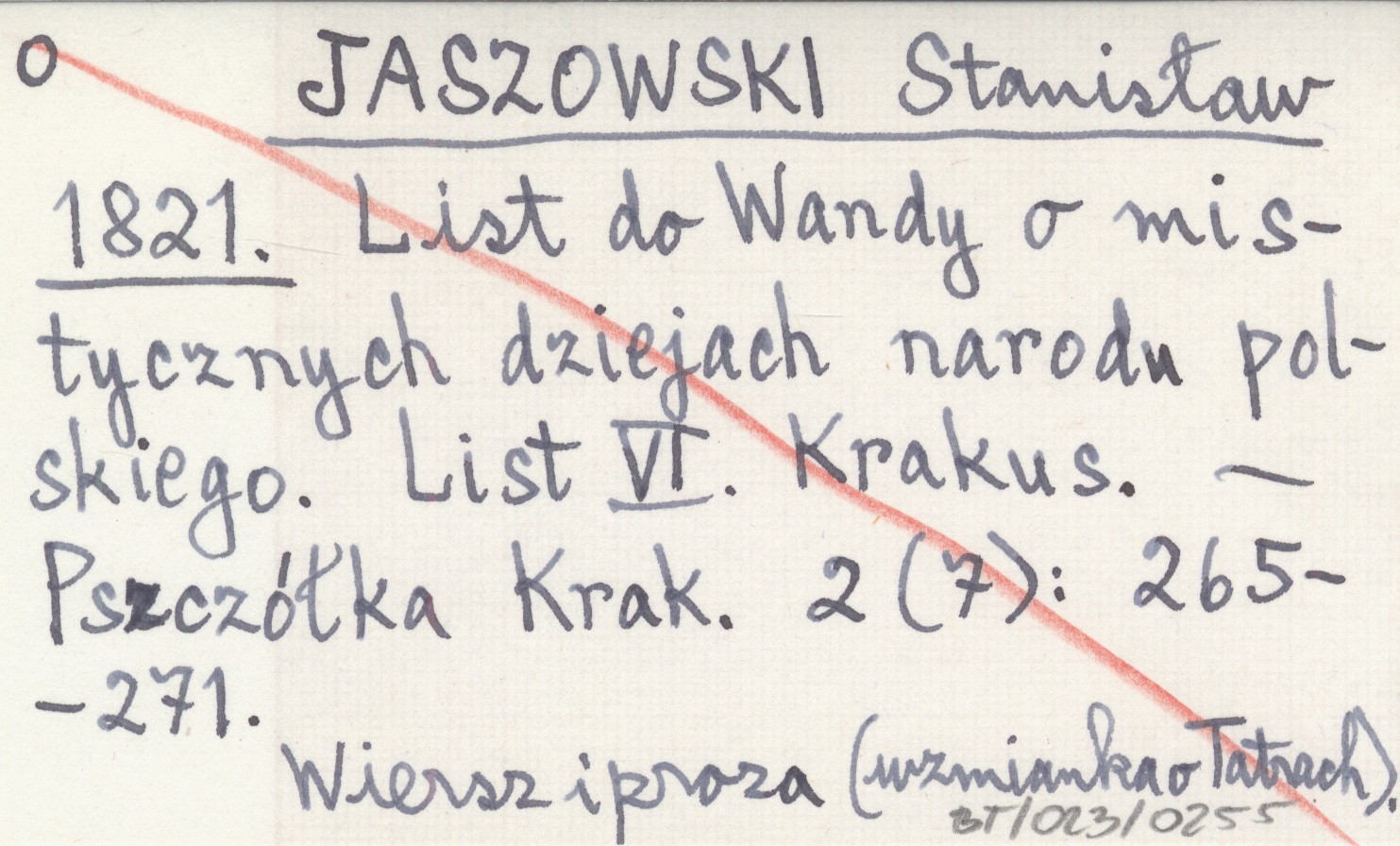 JASZOWSKI Stanisław 1821 List do Wandy o mistycznych dziejach narodu polskiego. List VI. Krakus.