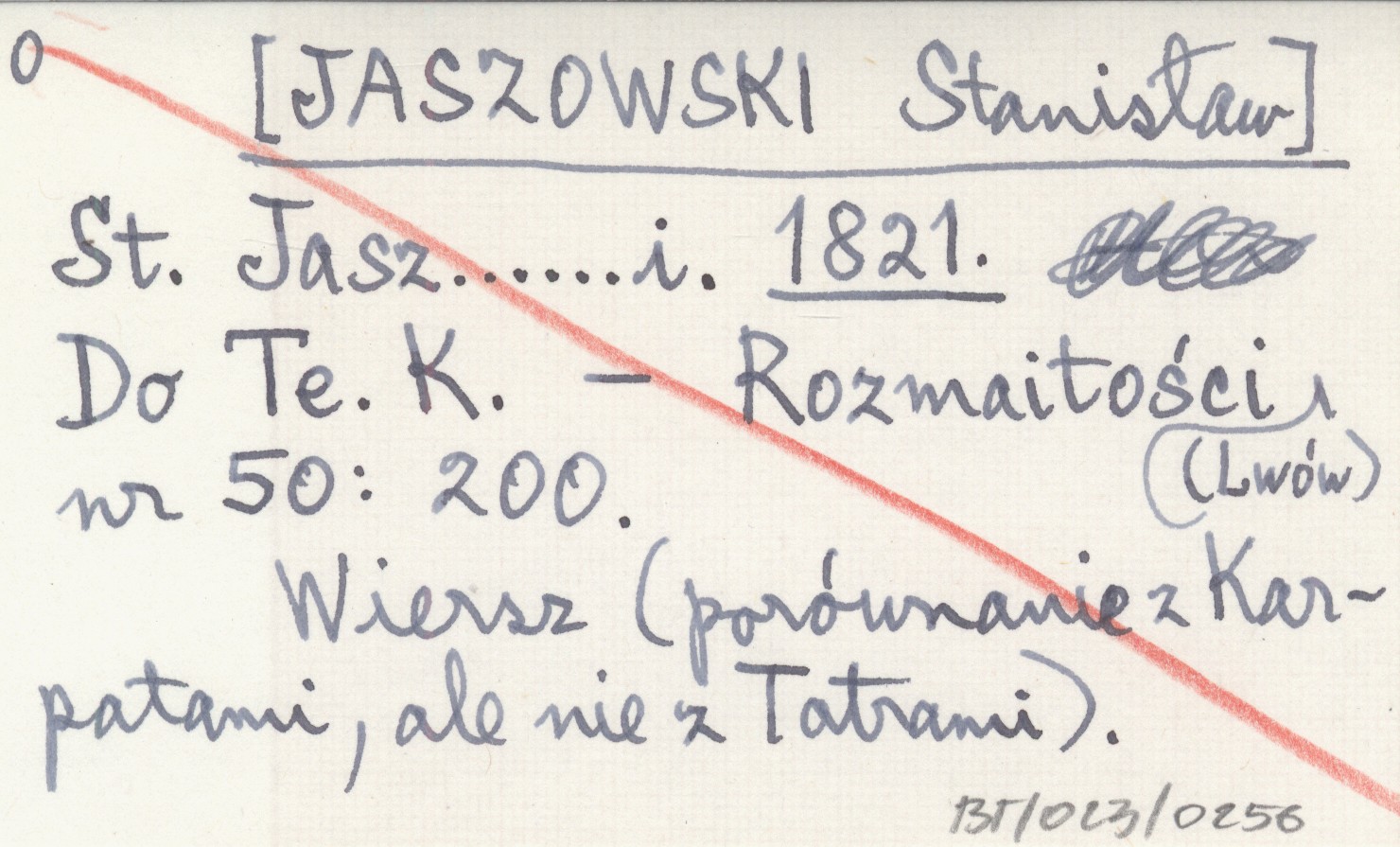 St. Jasz......i. [JASZOWSKI Stanisław] 1821 Do Te. K.