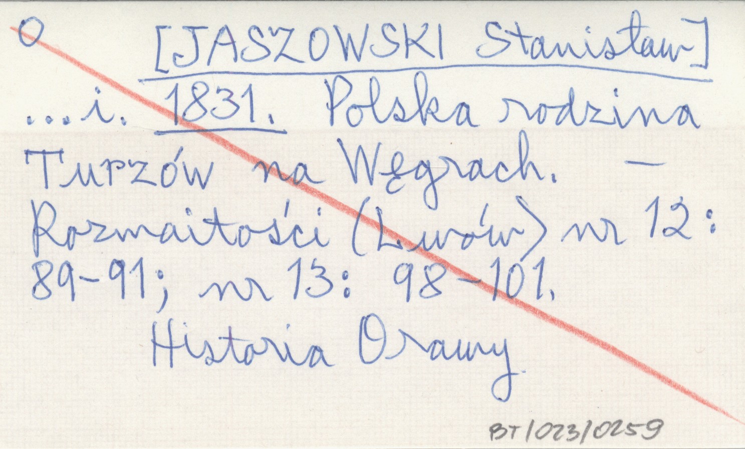 ...i. [JASZOWSKI Stanisław] 1831 Polska rodzina Turzów na Węgrach.