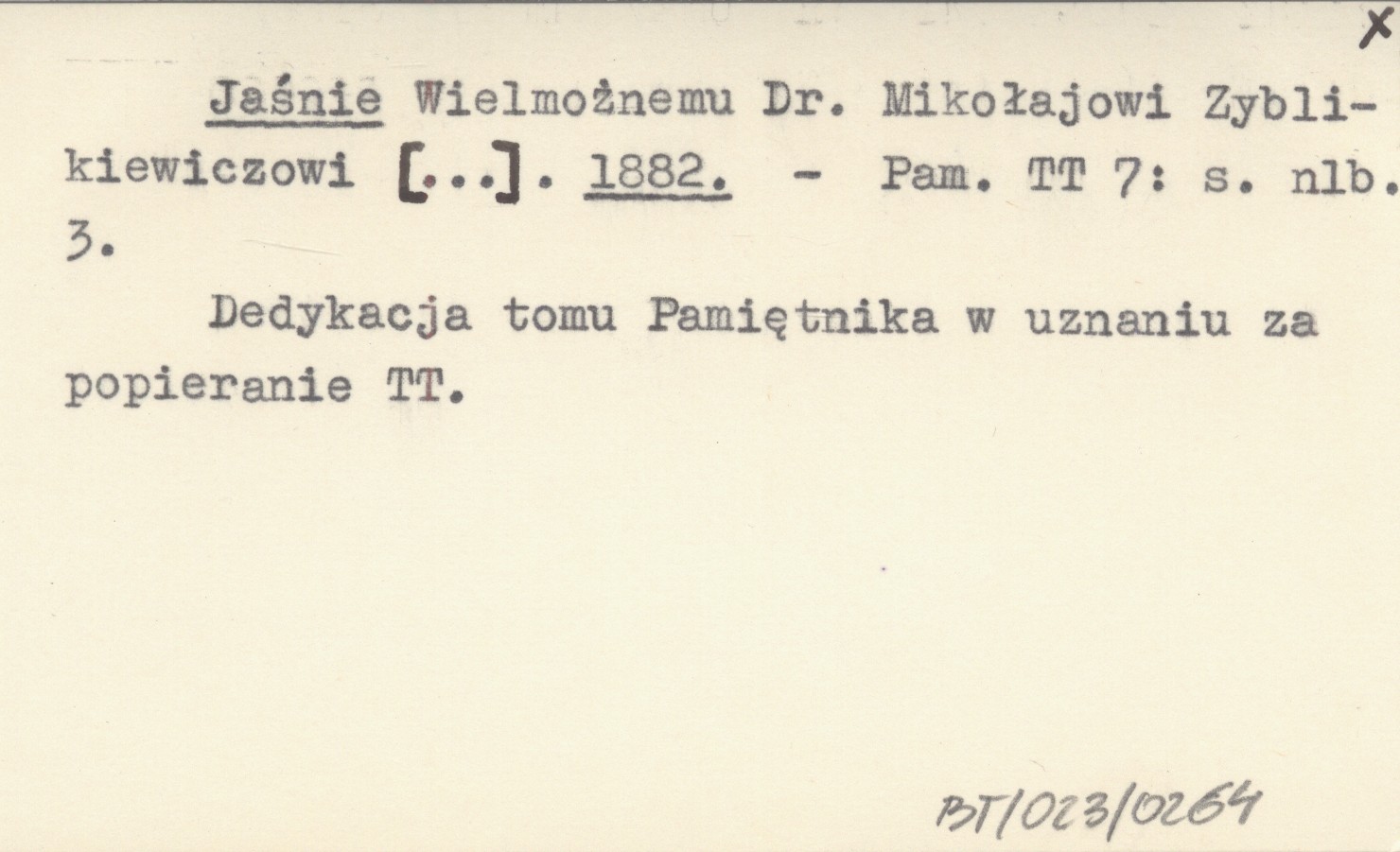 Jaśnie Wielmożnemu Dr. Mikołajowi Zyblikiewiczowi [...]. 1882