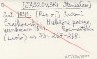 S. J. [JASZOWSKI Stanisław] 1841 Antoni Czajkowski: Niektóre poezye. Warszawa 1841.