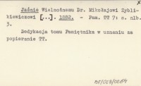 Jaśnie Wielmożnemu Dr. Mikołajowi Zyblikiewiczowi [...]. 1882