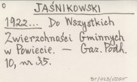 JAŚNIKOWSKI 1922... Do Wszystkich Zwierzchności Gminnych w Powiecie.