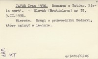 JAVOR Ivan 1936 Romanca z Tatier. Biela smrť.