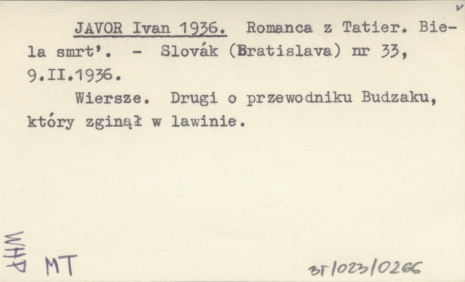 Slovák (Bratislava) , Nr 33, 9.II.1936. Wiersze. Drugi o przewodniku Budzaku, który zginął w lawinie.