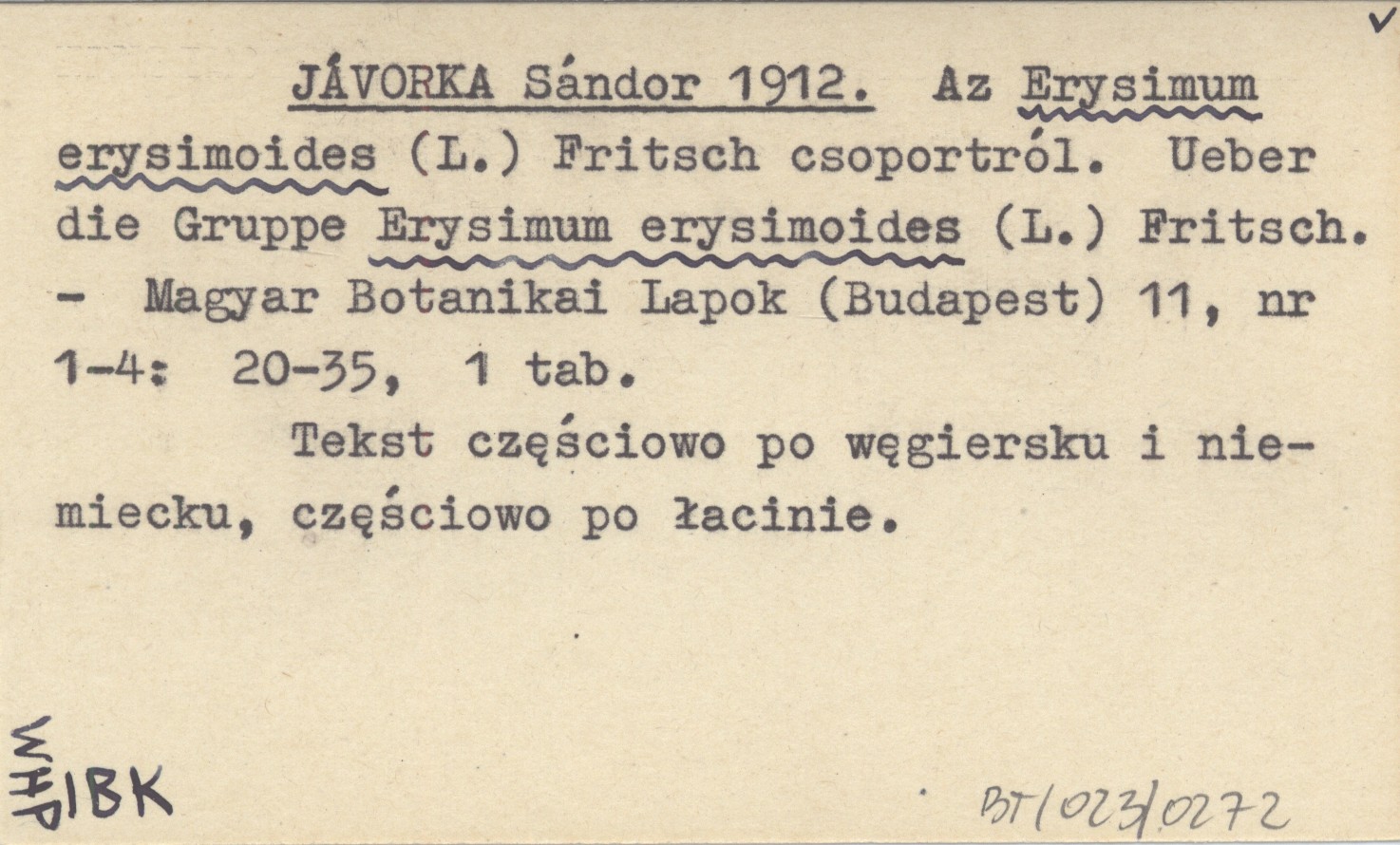 JÁVORKA Sándor 1912 Az Erysimum erysimoides (L.) Fritsch csoportról. Ueber die Gruppe Erysimum erysimoides (L.) Fritsch.