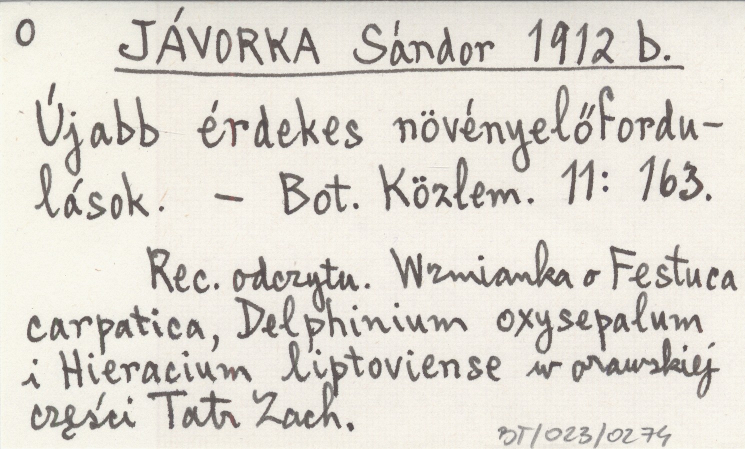 JÁVORKA Sándor 1912 b Újabb érdekes növényelőfordulások.