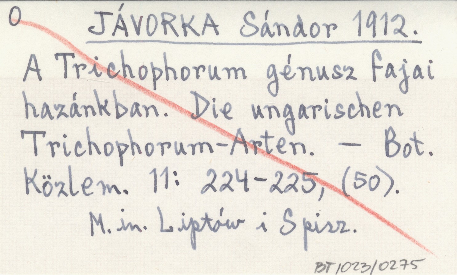 JÁVORKA Sándor 1912 A Trichophorum génusz fajai hazánkban. Die ungarischen Trichophorum-Arten.