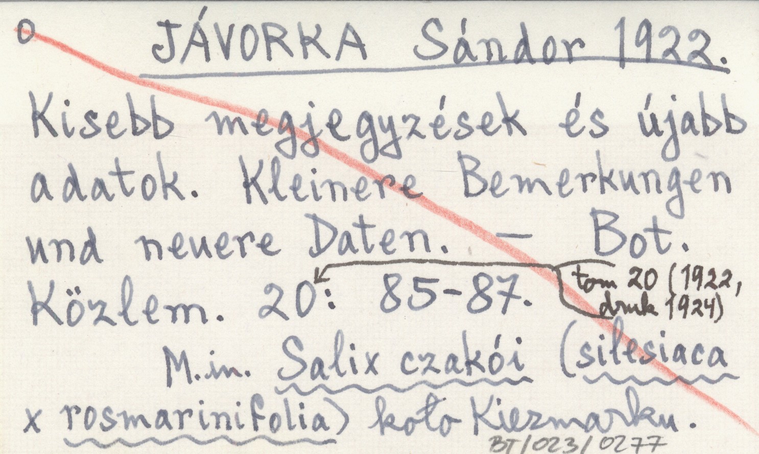 Botanikai Közlemányek, T. 20 (1922, druk 1924): 85-87. M. in. Salix czakói (silesiaca x rosmarinifolia) koło Kiezmarku.