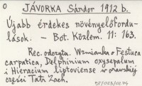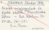 JÁVORKA Sándor 1914 Kisebb megjegyzések és újabb adatok. Floristische Daten.