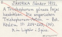 JÁVORKA Sándor 1912 A Trichophorum génusz fajai hazánkban. Die ungarischen Trichophorum-Arten.