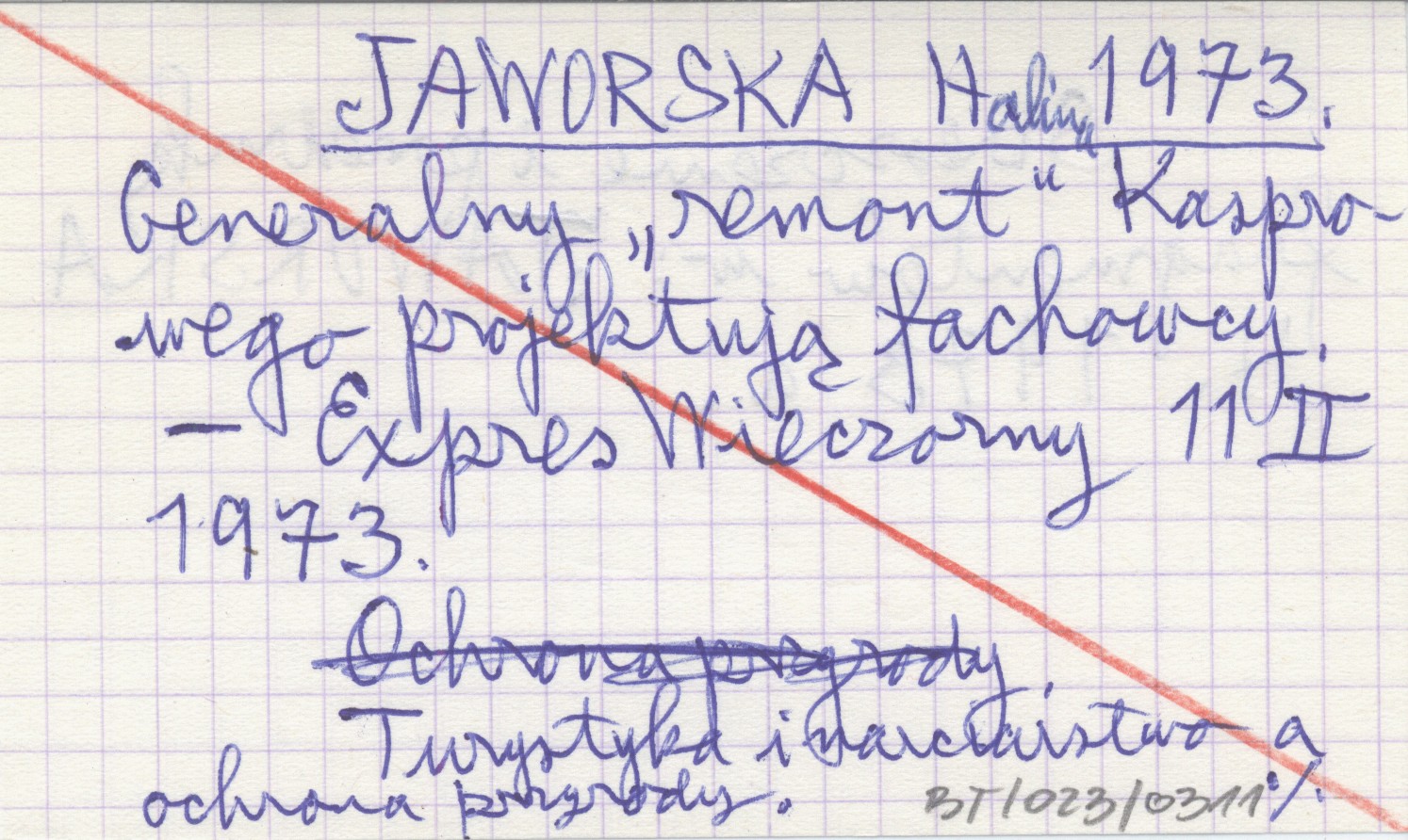 Express Wieczorny, 11 II 1973. Turystyka i narciarstwo a ochrona przyrody. Streszczenie i przedruk fragmentów w: JAWORSKA H. 1973 a.