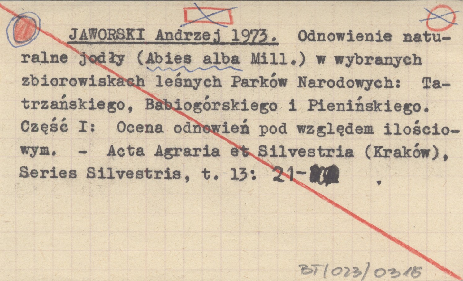 JAWORSKI Andrzej 1973 Odnowienie naturalne jodły (Abies alba Mill.) w wybranych zbiorowiskach leśnych Parków Narodowych: Tatrzańskiego, Babiogórskiego i Pienińskiego. Część I: Ocena odnowień pod względem ilościowym.