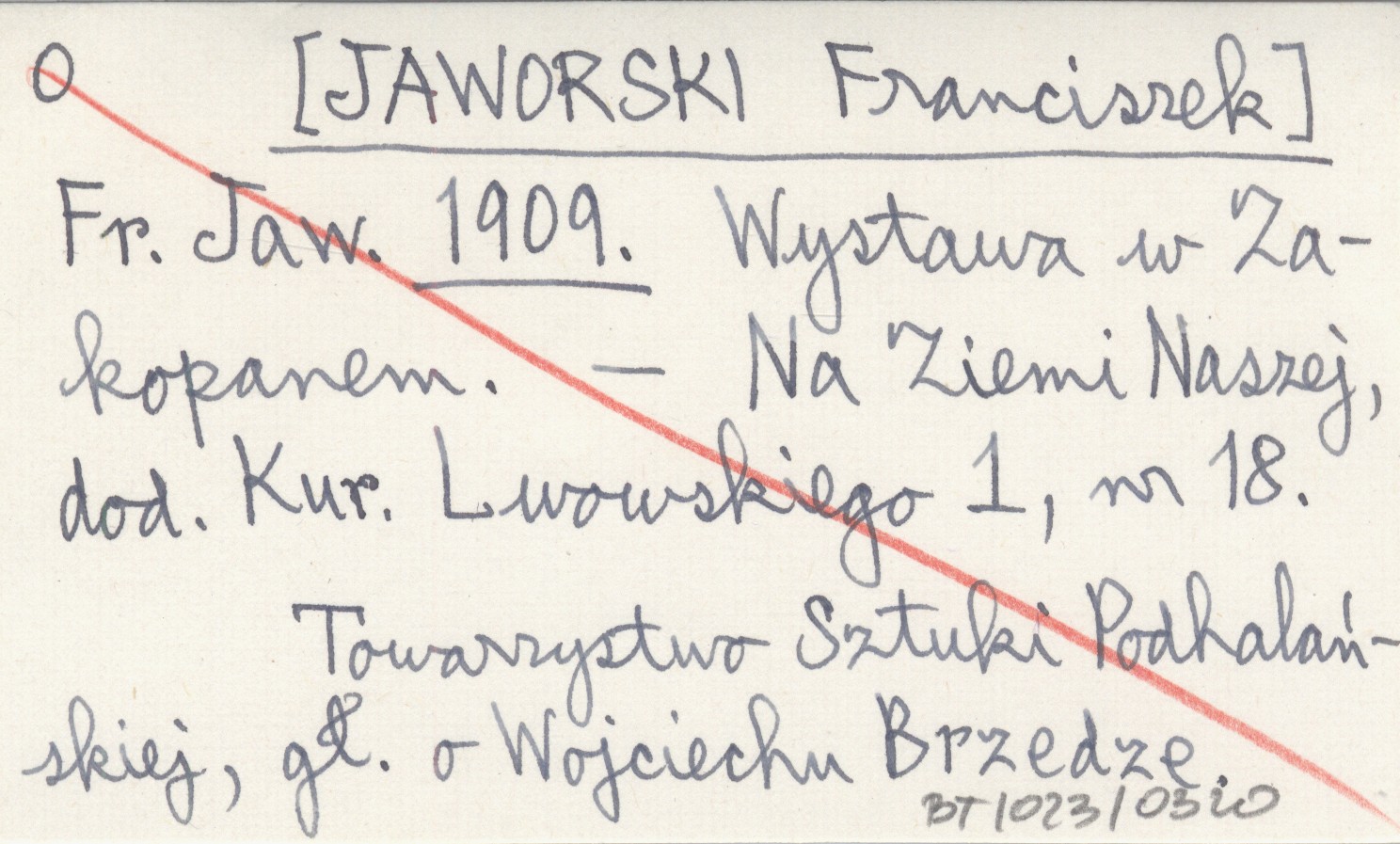 Fr. Jaw. [JAWORSKI Franciszek] 1909 Wystawa w Zakopanem.