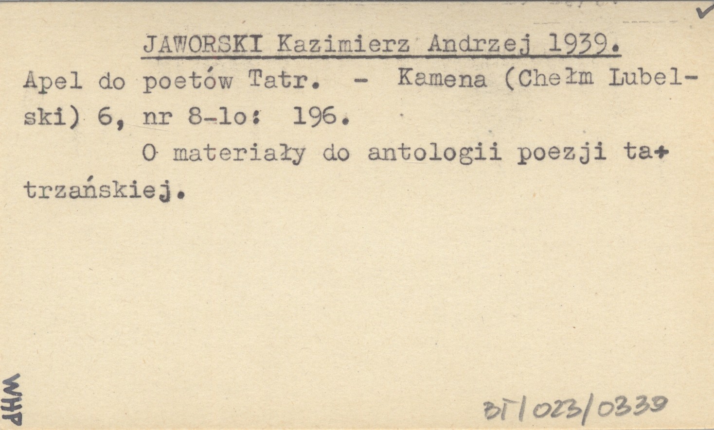 Kamena (Chełm Lubelski) , 6, nr 8-10: 196. O materiały do antologii poezji tatrzańskiej.