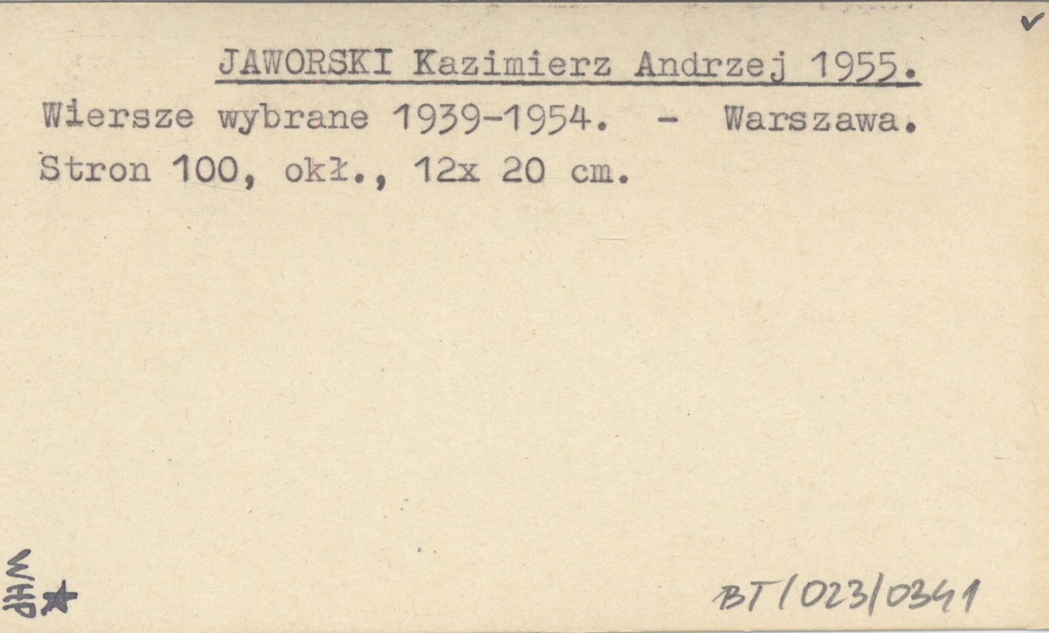 JAWORSKI Kazimierz Andrzej 1955 Wiersze wybrane 1939-1954.