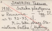 JAWORSKI Tadeusz 1910 Sztuka plastyczna w Poznaniu.