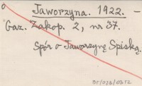 Jaworzyna. Oświadczenie komisji jaworzyńskiej. Interpelacja sejmowa. 1922