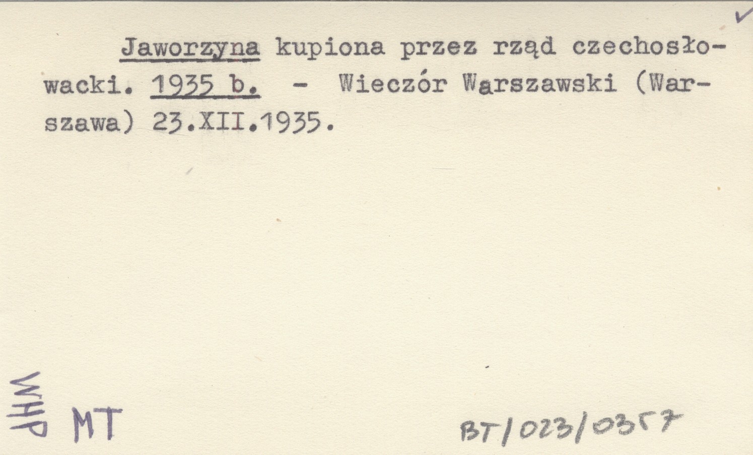 Jaworzyna kupiona przez rząd czechosłowacki. 1935 b