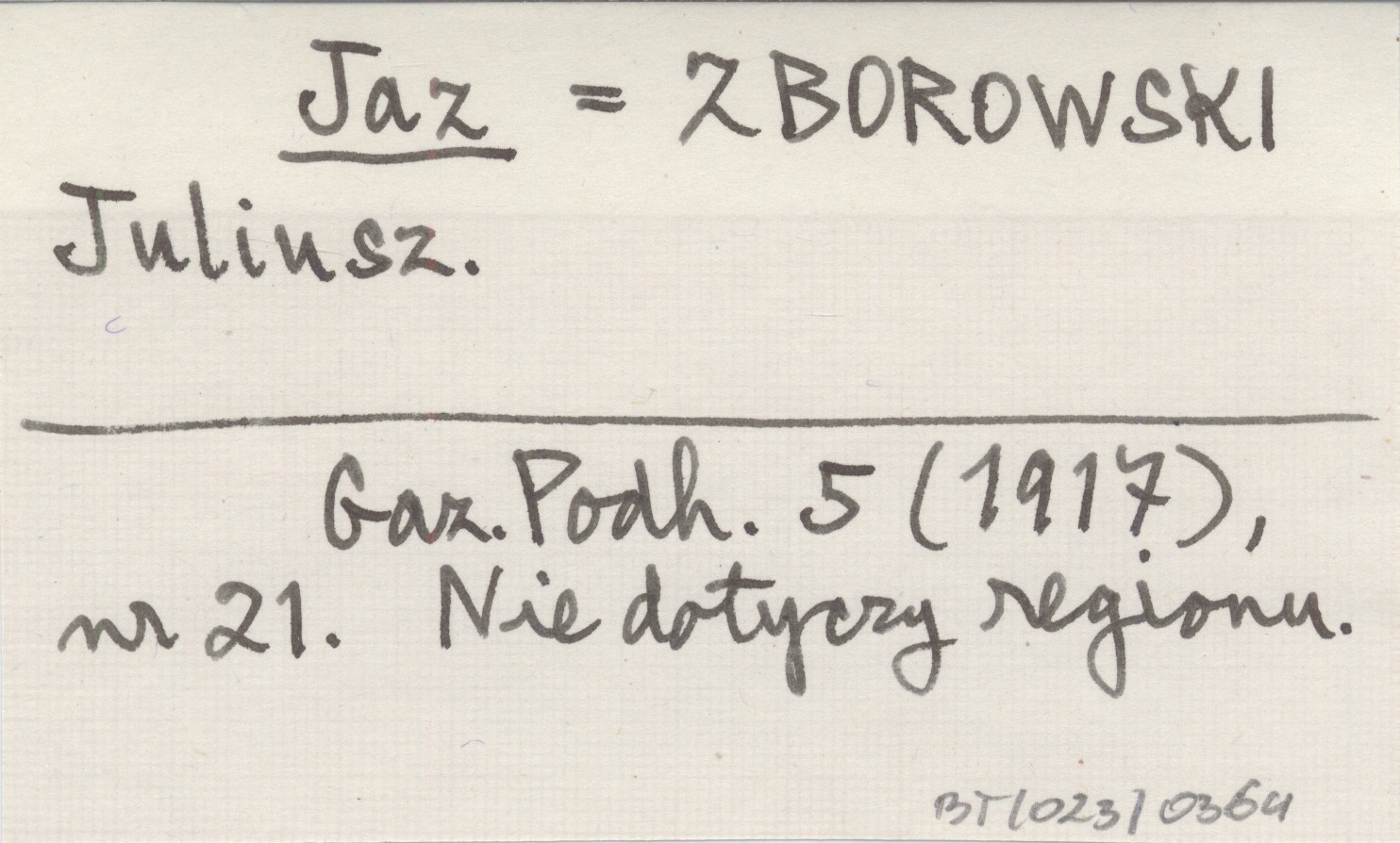 Jaz ZBOROWSKI Juliusz Gazeta Podhalańska 5 (1917), nr 21. Nie dotyczy regionu.