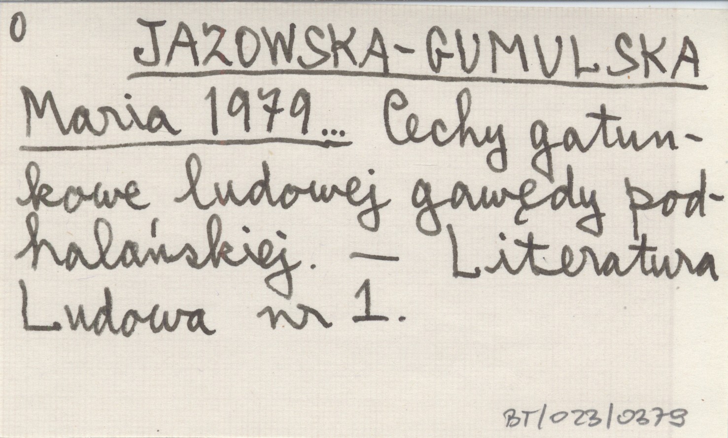 JAZOWSKA-GUMULSKA Maria 1979... Cechy gatunkowe ludowej gawędy podhalańskiej.