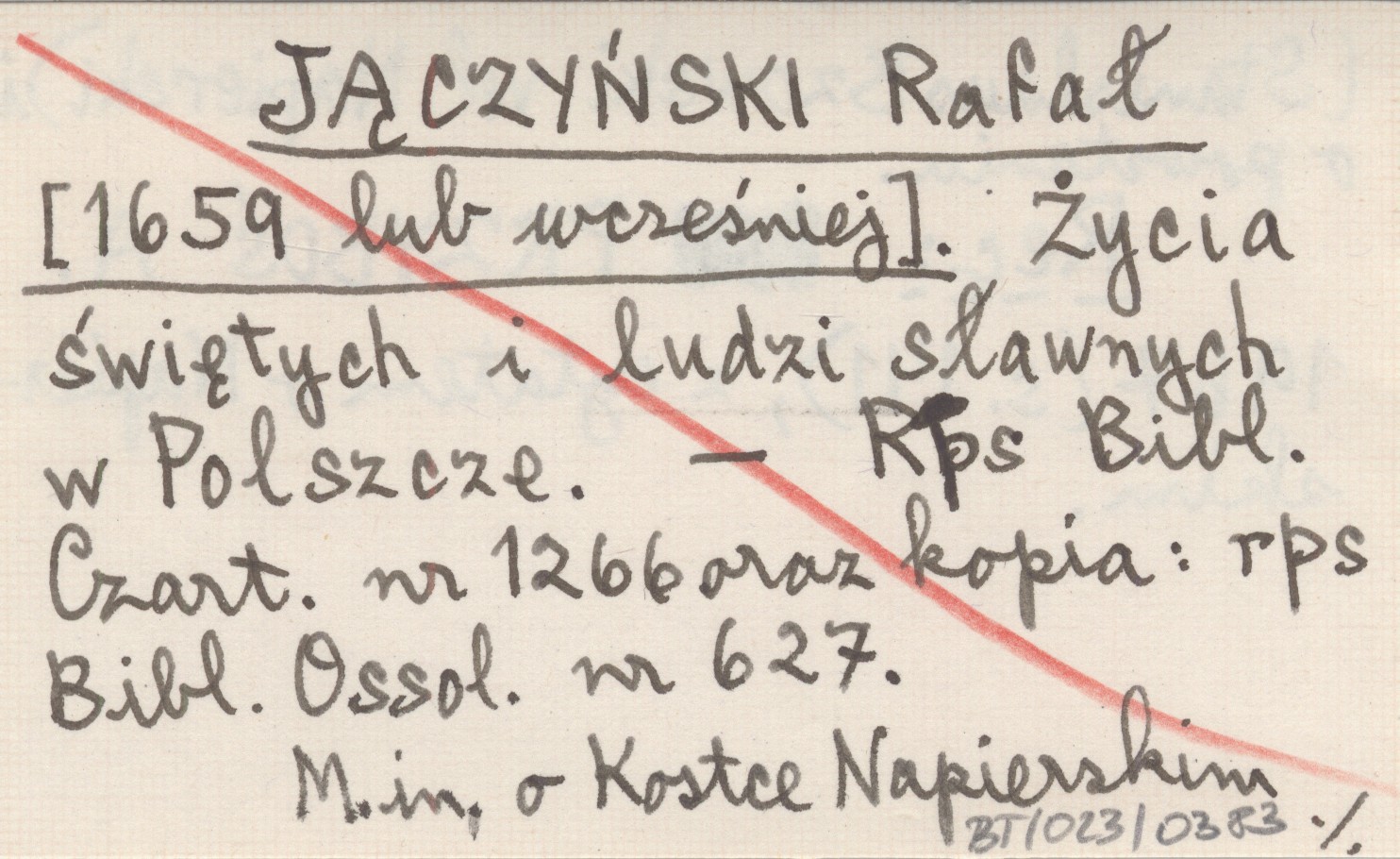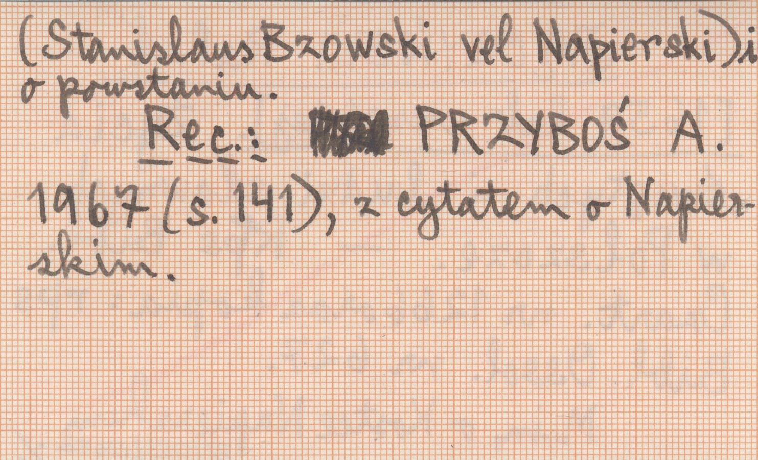 , M. in. i Kostce Napierskim (Stanislaus Bzowski vel Napierski) i o powstaniu. Rękopis Bibl. Czart. nr 1266 oraz kopia: rękopis Bibl. Ossol. nr 627. REC: PRZYBOŚ A. 1967 (S. 141), z cytatem o Napierskim.